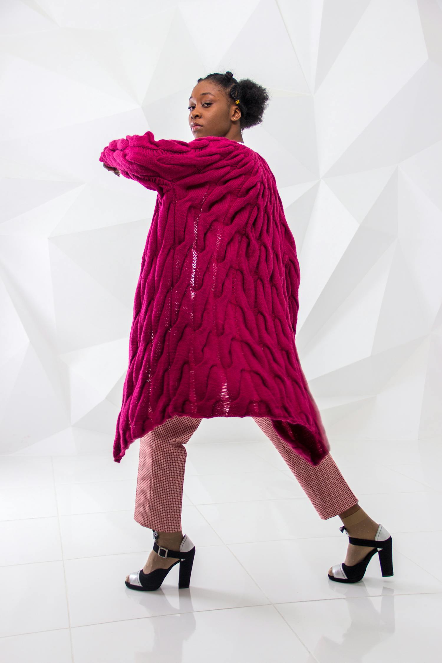 3、配饰搭配:手织围巾还可以与各种配饰如帽子、手套、耳环等进行搭配,通过合理的搭配,可以让整个造型更加出彩。